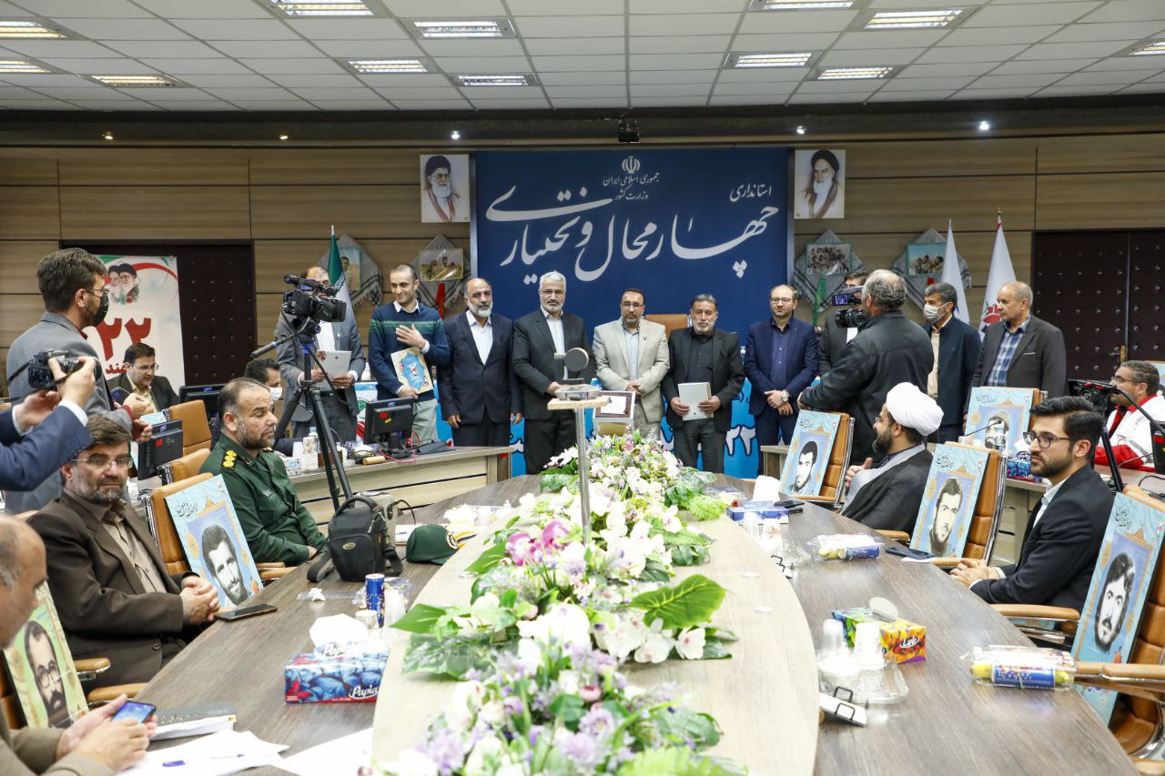 به گزارش روابط عمومي استانداري چهارمحال و بختياري، در اين آيين از ۶ اثر شامل کتاب، فيلمنامه و محصولات چندرسانهاي در حوزه ايثار و شهادت رونمايي و از پدر شهيد يزدان قجري، برادر شهيد سيدرحمان حسيني، فرزند جانباز محمدصادق حيدري و سيدعلي احمدي از جانبازان و يادگاران هشت سال دفاع مقدس تجليل شد.