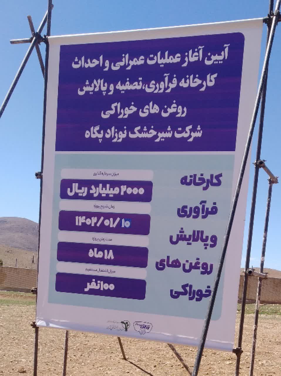 وي خاطرنشان کرد: عمليات اجرايي احداث کارخانه فرآوري، تصفيه و پالايش روغنهاي خوراکي با کلنگ زني مديرعامل صندوق بازنشستگي کشوري و استاندار استان شروع شده است.