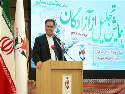 استاندار چهارمحال وبختياري در همايش تجليل از آزادگان استان گفت: دلاوري‌ها و پايداري‌هاي راسخ آزادگان و بسيجيان در دوران دفاع مقدس مايه عزت و آبروي امروز نظام جمهوري اسلامي و برگ زرين بر تاريخ انقلاب است.